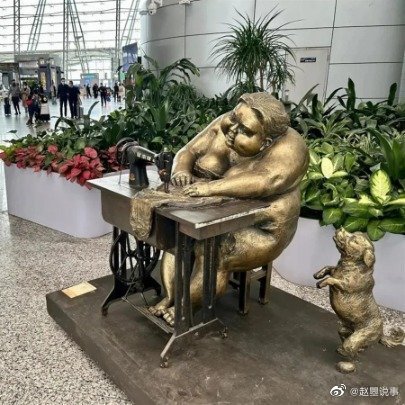 #雕塑院回应机场雕塑争议造型# 广州白云机场大厅“胖女”造型雕塑遭遇大量旅客吐槽。