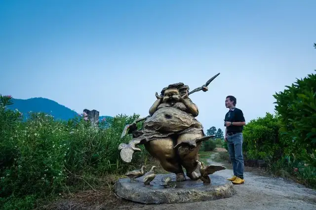 本次展出的许鸿飞雕塑包括《当时明月》《东乡绣娘》《逗牛》《鹅为卿狂》《二重奏》《肥年肥舞》《福牛奋发》等15件,这些充满幸福感的雕塑作品已经出现在南区曹边村的田间地头、碉楼故址、石径、广场,带领游人领略这里迷人的自然风光,感受当地丰厚的文化底蕴。