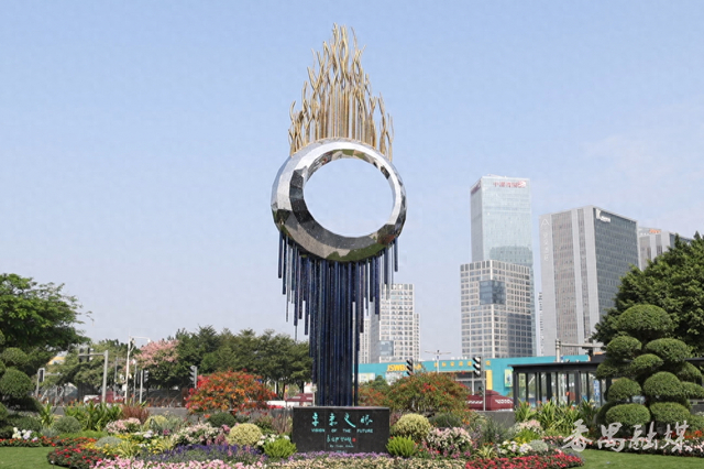 9.8米高的“未来之眼”雕塑袁熙坤是国际文化交流领域的重要推动者,长期以艺术为纽带搭建跨文明对话的桥梁。此次,他为香江1号量身创作的“未来之眼”雕塑,精准捕捉了这一场域的精神特质。袁熙坤认为,香江1号本身即是一件“融合科技、生态、艺术与人文”的立体大地艺术品。“我决心以未来之眼’为题,塑造一件既扎根中国文化、又眺望人类共同未来的作品。”袁熙坤阐述道,“这件高9.8米的艺术创作,采用不锈钢材质锻造,中央通透的圆环,正是一只凝视寰宇、洞察万象的智慧之眼。它不仅仅是一件雕塑,更是一种态度、一种视野、一种邀请——邀请所有人在这里,看懂中国,看懂未来。”