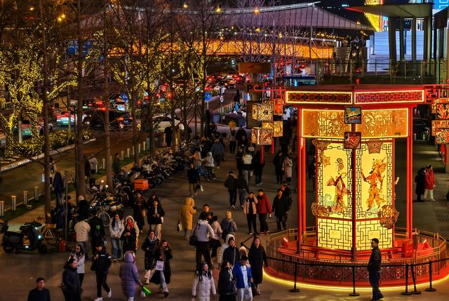 夜幕下,市民穿梭于流光溢彩间,赏美景、备年货,在传统年味与潮流氛围的交融中,提前感受新春佳节的热闹与喜庆。